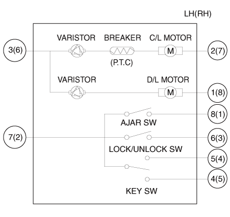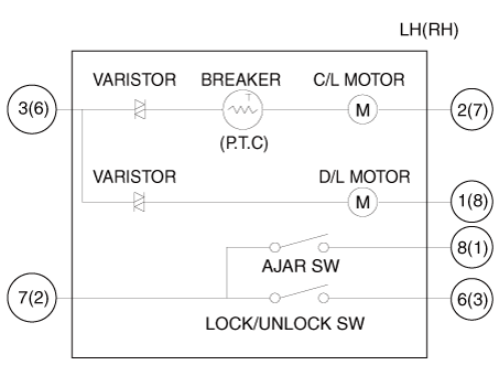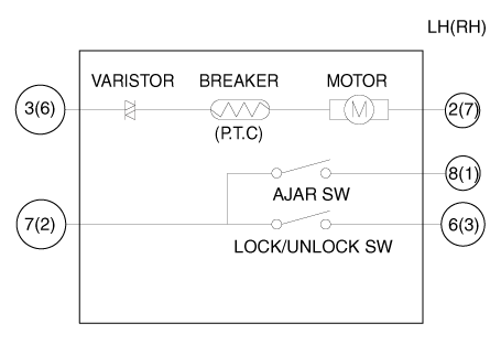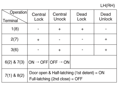 Проверьте работу привода, подключив питание и массу, как показано ниже. Во избежание повреждения привода подавайте напряжение батареи только на мгновение. [Центральный замок (Без ключевого переключателя)]