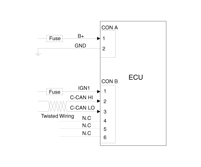 Компоненты (датчик угла поворота рулевого колеса, датчик крутящего момента, предохранительное реле и т. д.) Система EPS расположена внутри рулевой колонки. Блок EPS, рулевая колонка, блок EPS нельзя разбирать для осмотра. Они должны быть заменены если необходимо.