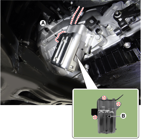 Отсоедините разъем EOP (A) и снимите EOP (B), ослабив болты.