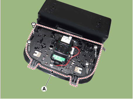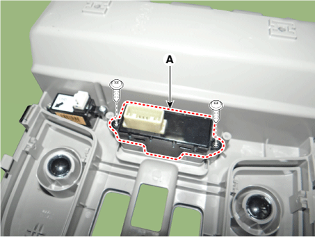 Снимите крышку лампы потолочной консоли (A) после ослабления крепления. винты.