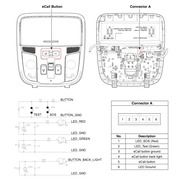 Снимите кнопку eCall (A) после ослабления крепежных винтов.