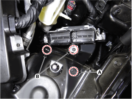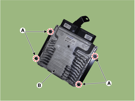Снимите модуль ECM(B), ослабив крепежные гайки (A).