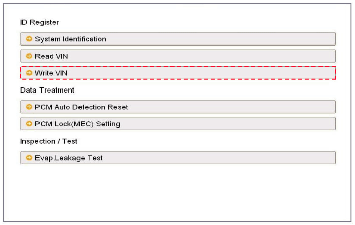 Выберите «Записать VIN» в меню «Регистрация удостоверения личности».