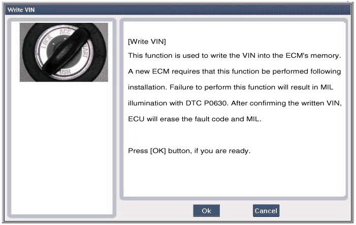 VIN (идентификационный номер автомобиля) — это номер с информацией о транспортном средстве. (производитель, тип автомобиля, модельный ряд/серия автомобиля, тип кузова, тип двигателя, трансмиссия Тип, год выпуска, расположение завода и т. д. Для получения дополнительной информации см. группе "GI" в данном РУКОВОДСТВЕ ПО ОБСЛУЖИВАНИЮ.) При замене модуля ECM VIN должен быть запрограммировано в ECM. Если в памяти ECM отсутствует VIN, код неисправности (DTC P0630) будет установлено.