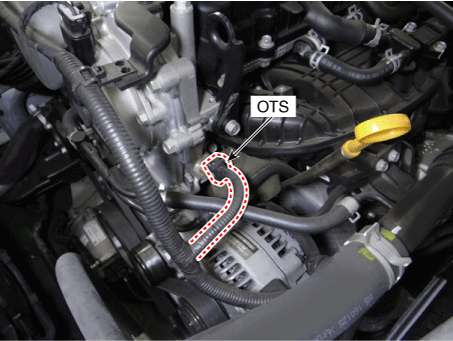 Если разъем датчика отсоединен при включенном замке зажигания будет записан диагностический код неисправности (DTC). В этом случае оставить отрицательная (-) клемма аккумулятора отсоединена на 15 секунд или более, пока диагностическая память стирается.