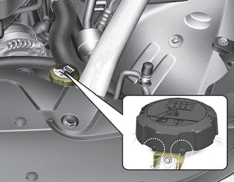 Убедитесь, что крышка охлаждающей жидкости правильно закрыта после доливки охлаждающей жидкости. В противном случае двигатель мог перегреться во время движения.