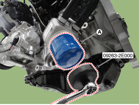 Снимите масляный фильтр (A) с помощью SST (09263-2E000, ключ для масляного фильтра).