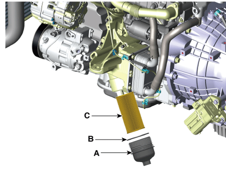 Установите новый элемент масляного фильтра (С).