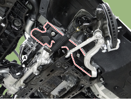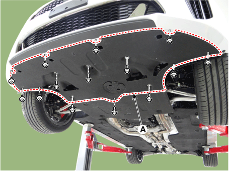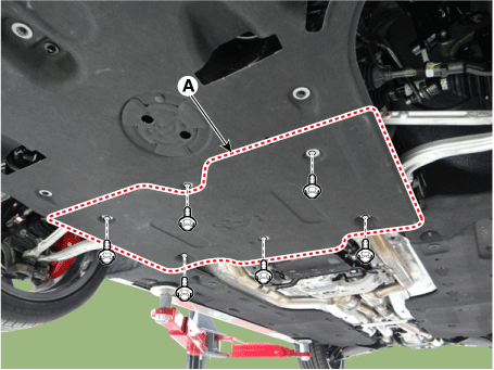 Снимите переднюю нижнюю крышку моторного отсека (A).