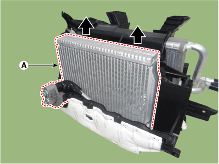 Снимите сердцевину испарителя (А) с блока отопителя.