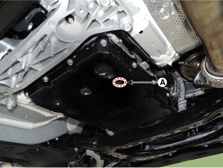 Снимите сливную пробку ATF (A), дайте жидкости стечь, а затем переустановите сливную пробку.