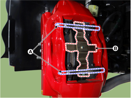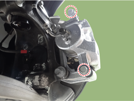 Ослабьте направляющие болты тормозного суппорта и снимите тормозной суппорт.