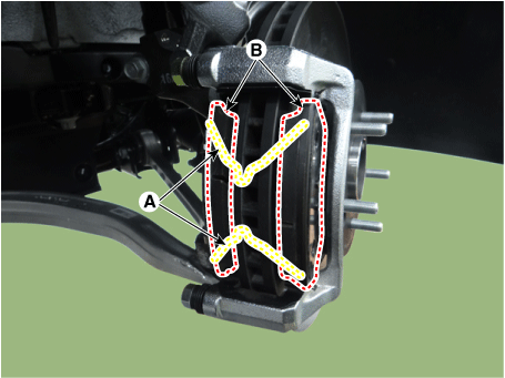 Снимите тормозной суппорт (А).