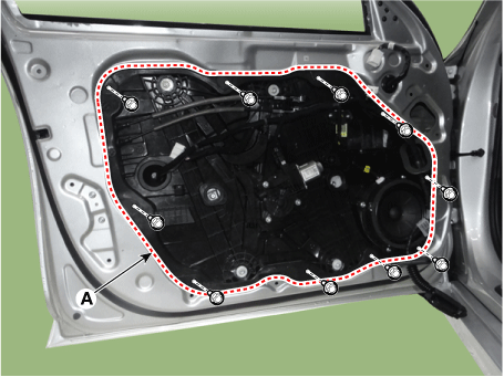 Снимите стекло передней двери. (См. Передняя дверь — «Оконное стекло передней двери») |