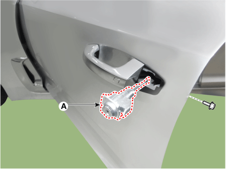Ослабьте винт крепления основания наружной ручки передней двери (А).