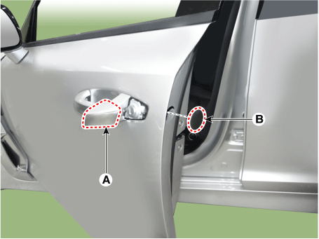 Снимите крышку замка передней двери (А) и крышку (В).