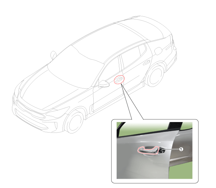Снимите наружную ручку передней двери (А), сдвинув ее назад.