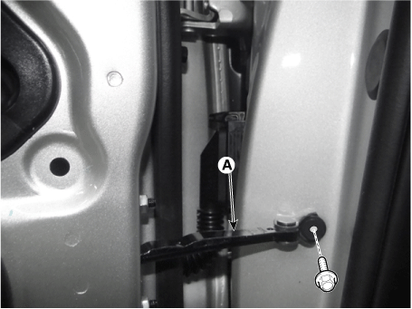 Ослабьте болт крепления регулировочной шайбы (А) передней двери.