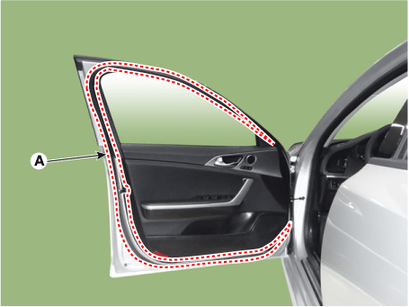 Отсоедините зажимы, затем снимите боковой уплотнитель передней двери (A).