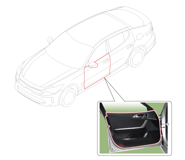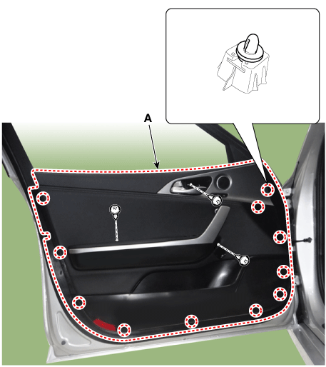 Снимите обивку передней двери (А) после ослабления крепежных винтов.