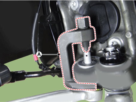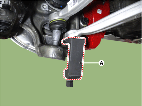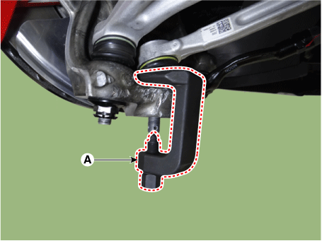 Снимите боковой рычаг с помощью съемника шарового шарнира (А).