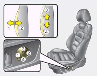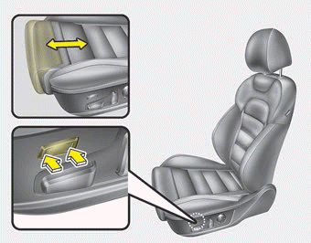 Поясничную опору можно отрегулировать, нажав переключатель поясничной опоры на сторона сиденья.