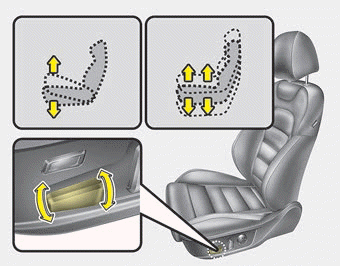 Переднее сиденье можно отрегулировать с помощью переключателей, расположенных снаружи. подушки сиденья. Перед началом движения установите сиденье в правильное положение, чтобы может легко управлять рулем, педалями и переключателями на панели приборов.