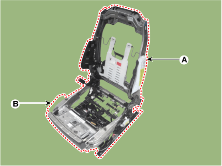 в сборе (A) и каркас подушки переднего сиденья в сборе (B).