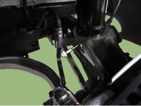 Ослабьте болт кронштейна тормозного шланга суппорта.