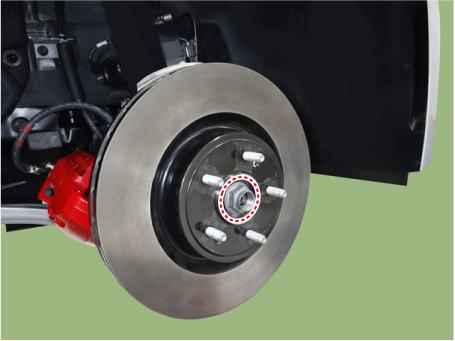 Снимите колесные гайки, переднее колесо и шину (A) с передней ступицы.