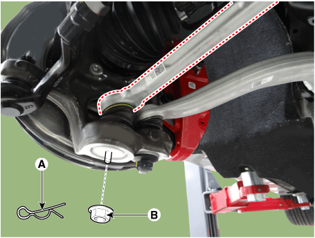Ослабьте штифт бокового рычага (А) и гайку (В).