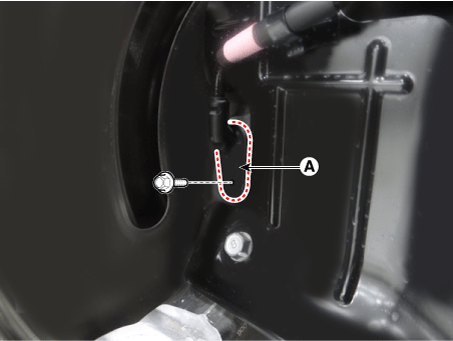 Ослабьте болт крепления датчика скорости колеса (А) и отсоедините колесо. датчик скорости.