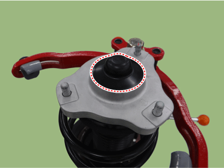 Сожмите винтовую пружину (А) с помощью устройства для сжатия пружин стойки. Не сжимать пружина чрезмерно.
