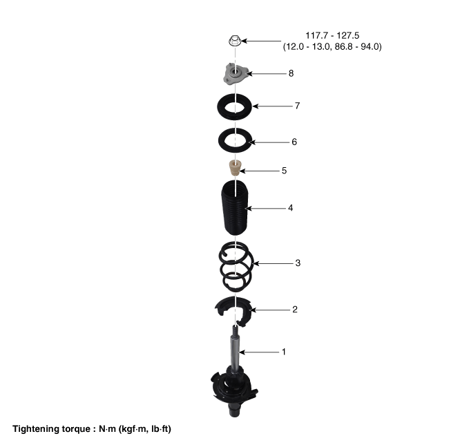 Постепенно поворачивайте болт на сжатии пружины, чтобы медленно освободить напряжение от пружины. Затем отсоедините компоненты. |