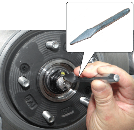 Ударом молотка по зубилу разблокируйте зачеканку гайки ступицы замка карданного вала.