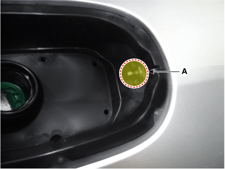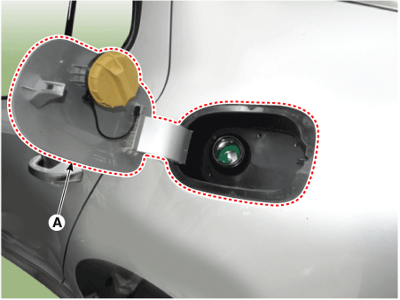 Снимите фиксирующий штифт лючка топливного бака (А).