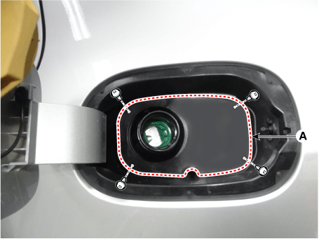 Снимите парковочную дверцу топливного бака (А), предварительно ослабив крепежные винты.