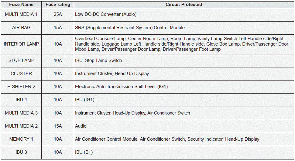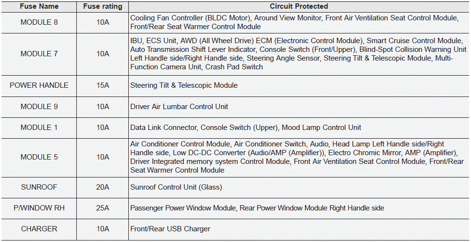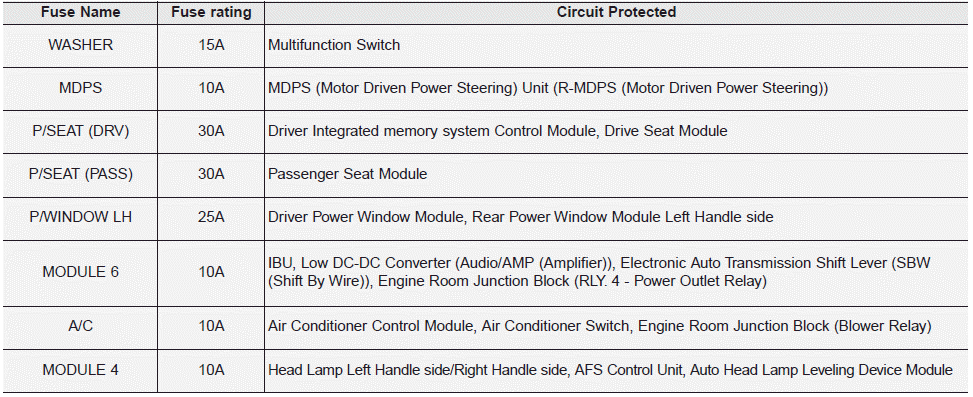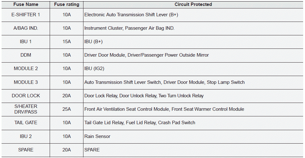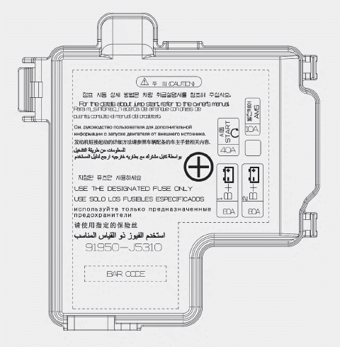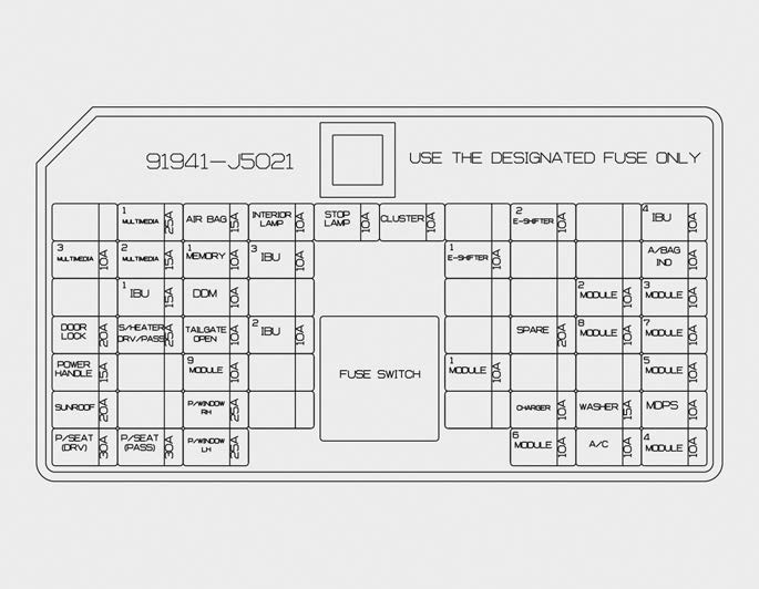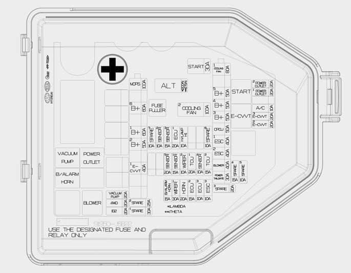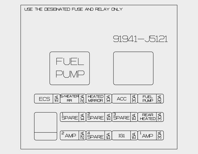 Внутри крышек панели предохранителей/реле вы можете найти этикетку с предохранителями/реле, описывающую имя и мощность предохранителя/реле.