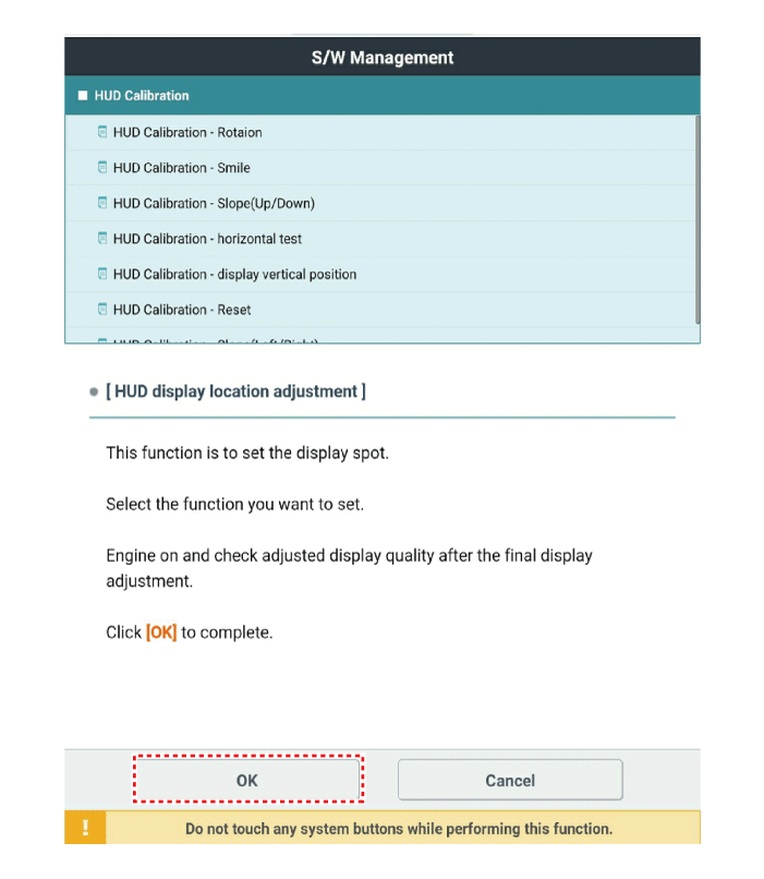 Перед «калибровкой» выполните «Калибровка HUD - инициализация».