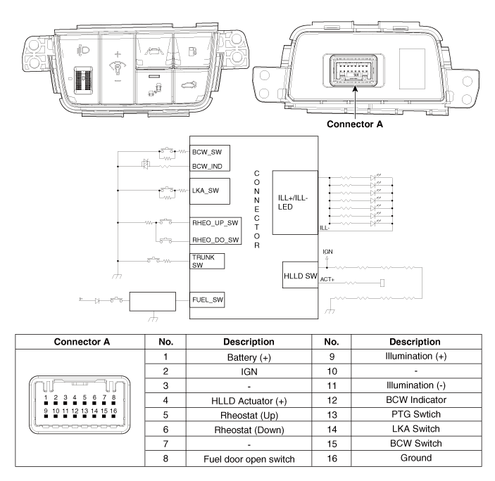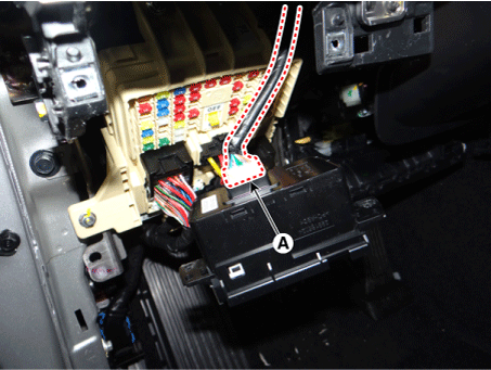 Снимите выключатель бокового аварийного щитка (А) после ослабления крепежных винтов.