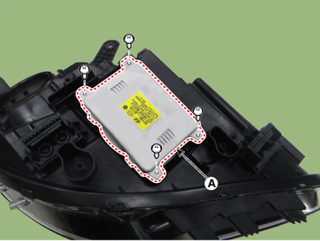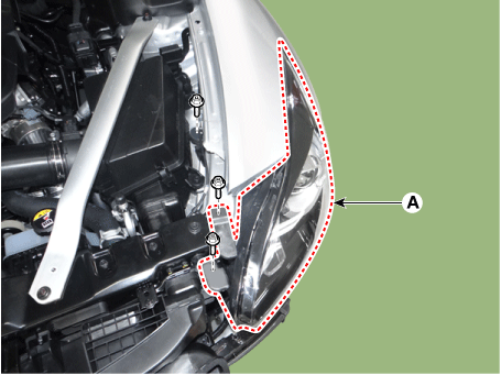 Снимите фару (А) после ослабления крепежных болтов.