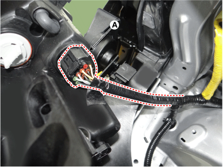 Отсоедините разъем фары (А).