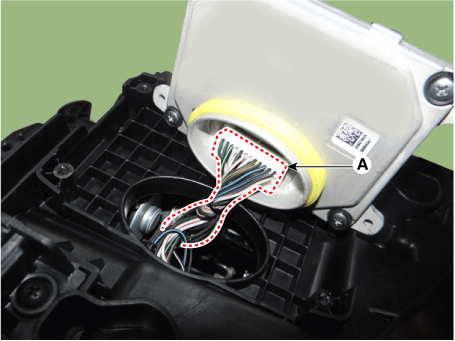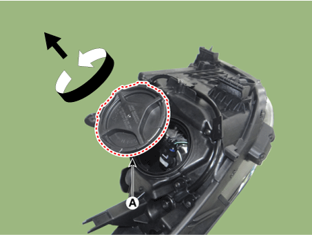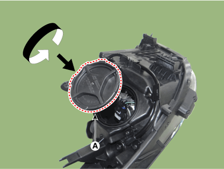 Установите пылезащитные колпачки (А) с фары в сборе после заворачивания. по часовой стрелке.