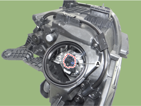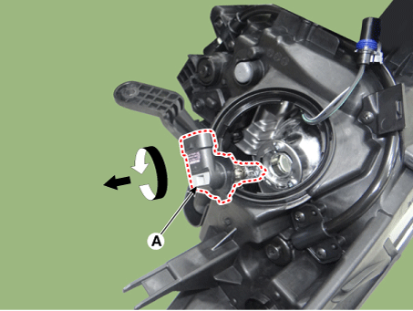 Снимите лампу дальнего/ближнего света фары, предварительно вынув патрон (А). от фары в сборе.