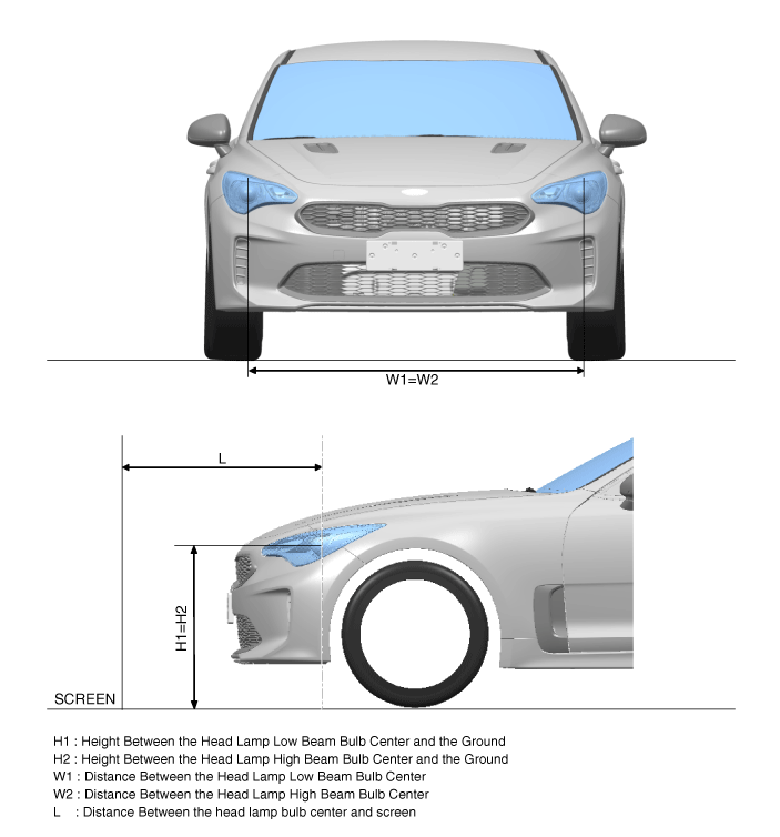 Нарисуйте вертикальные линии (проходящие через соответствующие центры фар) и горизонтальная линия (проходящая через центр фар) на экране. |