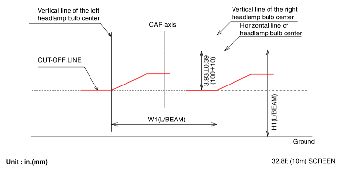 Когда фары и аккумулятор находятся в нормальном состоянии, направьте фары поэтому самая яркая часть приходится на горизонтальные и вертикальные линии. А: вертикальный Б : Горизонтальный