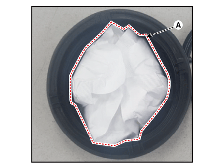 Вставьте влагопоглотитель (А) загнутыми сторонами вверх.