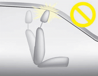 Если откинуть спинку сиденья вперед вместе с подголовником и подушкой сиденья поднят, подголовник может соприкасаться с солнцезащитным козырьком или другими частями транспортное средство.