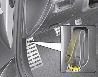 1. Потяните рычаг фиксатора, чтобы открыть капот. Капот должен немного открыться.