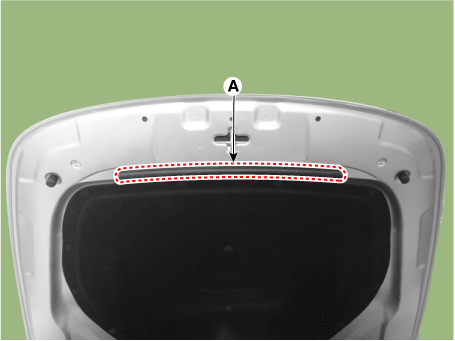 Отсоедините зажим, а затем снимите уплотнитель капота (А).